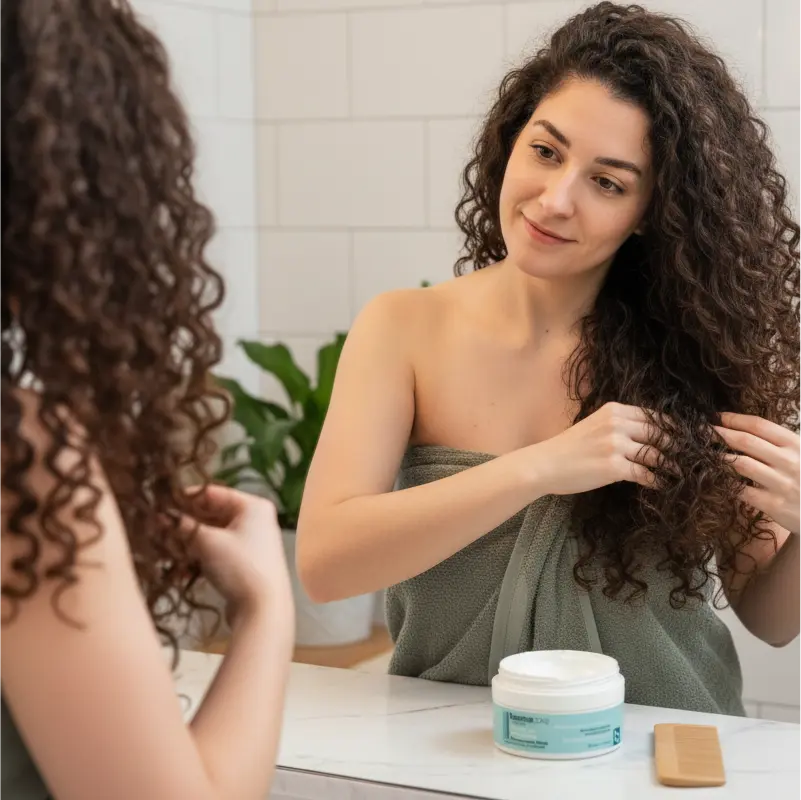 3️⃣ Define tus rizos con la técnica que prefieras (scrunch o twist).